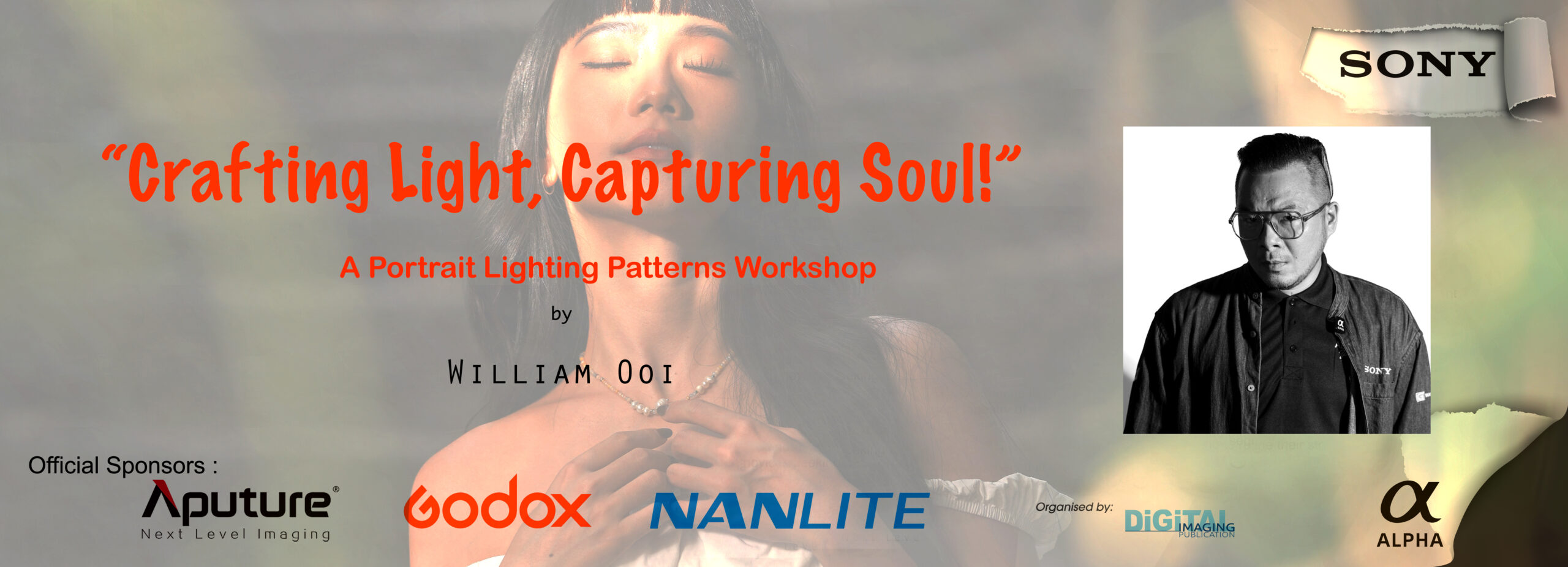Attention photographers! Elevate your portrait photography to new heights with William Ooi, Sony Alpha Professional and award-winning photographer, in his upcoming exclusive workshop, “The Seven Portrait Lighting Patterns: Crafting Light, Capturing Soul.”